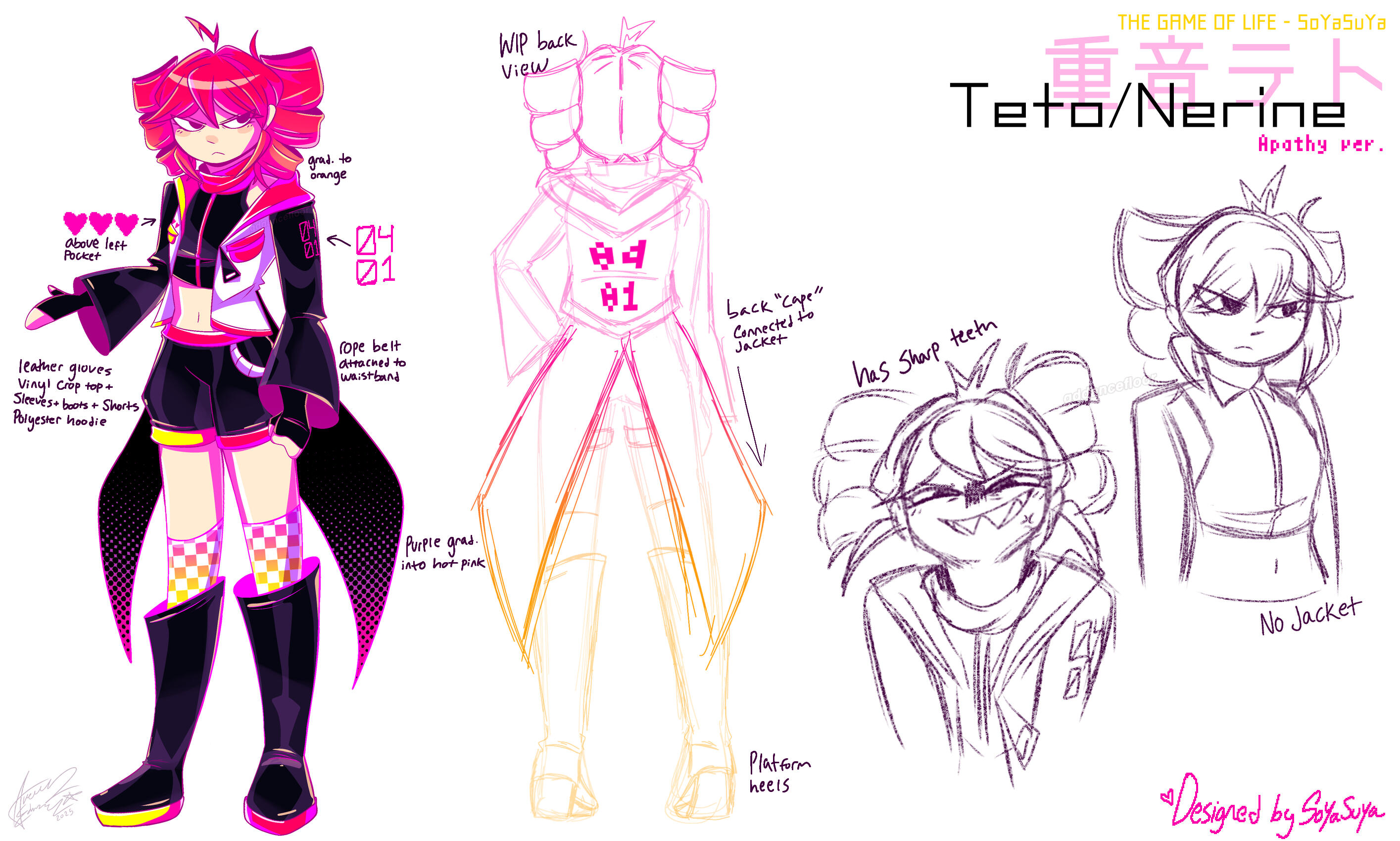 - She has extremely bad luck due to the fact that The Game of Life was originally made in 2022 when it was still called "F_CKIN' BAD LUCK!" and was a Miku only original since Teto's Synth V voicebank wasn't out (or announced). The song had a sort of different meaning, particularly wanting to commit suicide due to suffering constant bad luck and not fitting in. This version never had a variant design. There are still references to this version in TGOL.